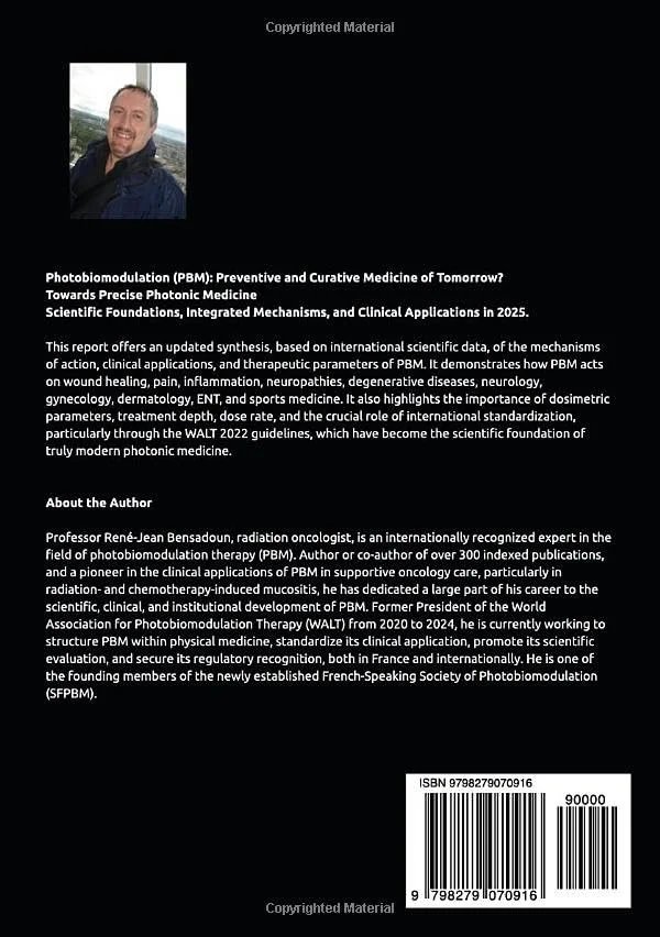 Ce rapport propose une synthèse actualisée, fondée sur les données scientifiques internationales, des mécanismes d'action, des applications cliniques et des paramètres thérapeutiques de la PBM. Il démontre comment la PBM agit sur la cicatrisation, la douleur, l'inflammation, les neuropathies, les pathologies dégénératives, la neurologie, la gynécologie, la dermatologie, l'ORL, et la médecine du sport. Il montre également l'importance des paramètres dosimétriques, de la profondeur de traitement, du débit de dose, ainsi que le rôle déterminant de la standardisation internationale, notamment via les recommandations
